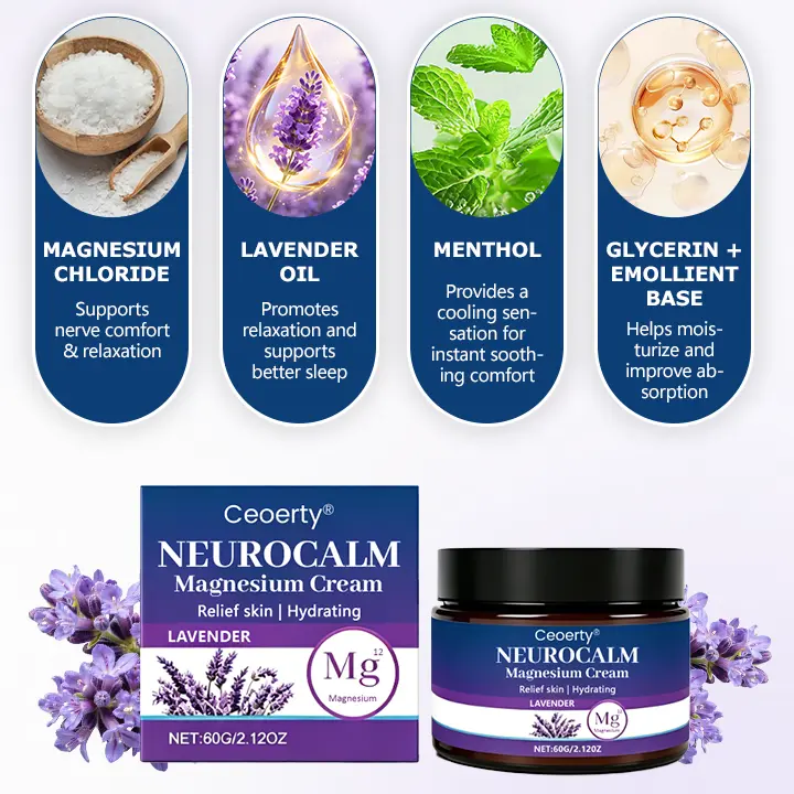 Ceoerty® NeuroCalm Magnesium Cream combines high-absorption magnesium with carefully selected supporting ingredients to help promote nerve comfort, relaxation, and daily balance. This advanced formula is designed to support a more comfortable body state—so you can move easier, rest better, and feel more at ease throughout the day and night.